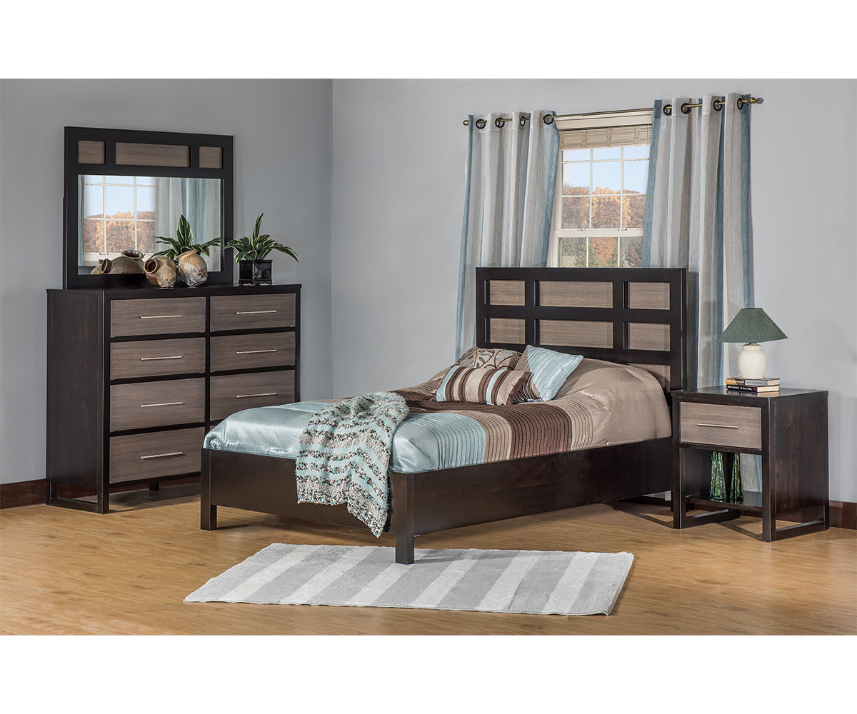 Shown With: Wood: Brown Maple Stain – Frame: Ebony Stain – Panel: Driftwood Glaze Hardware: K1004 Brushed Nickle Bar Pull