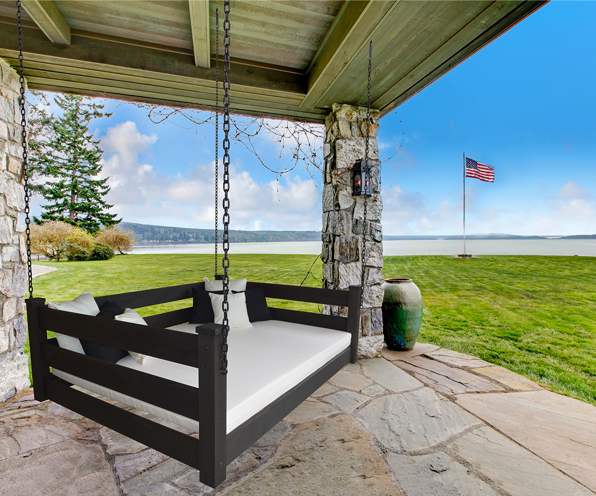 Features: • Needs to be hung inside or under a covered porch • Made of knot-free Southern Yellow Pine wood • Shown with a heavy duty black chain