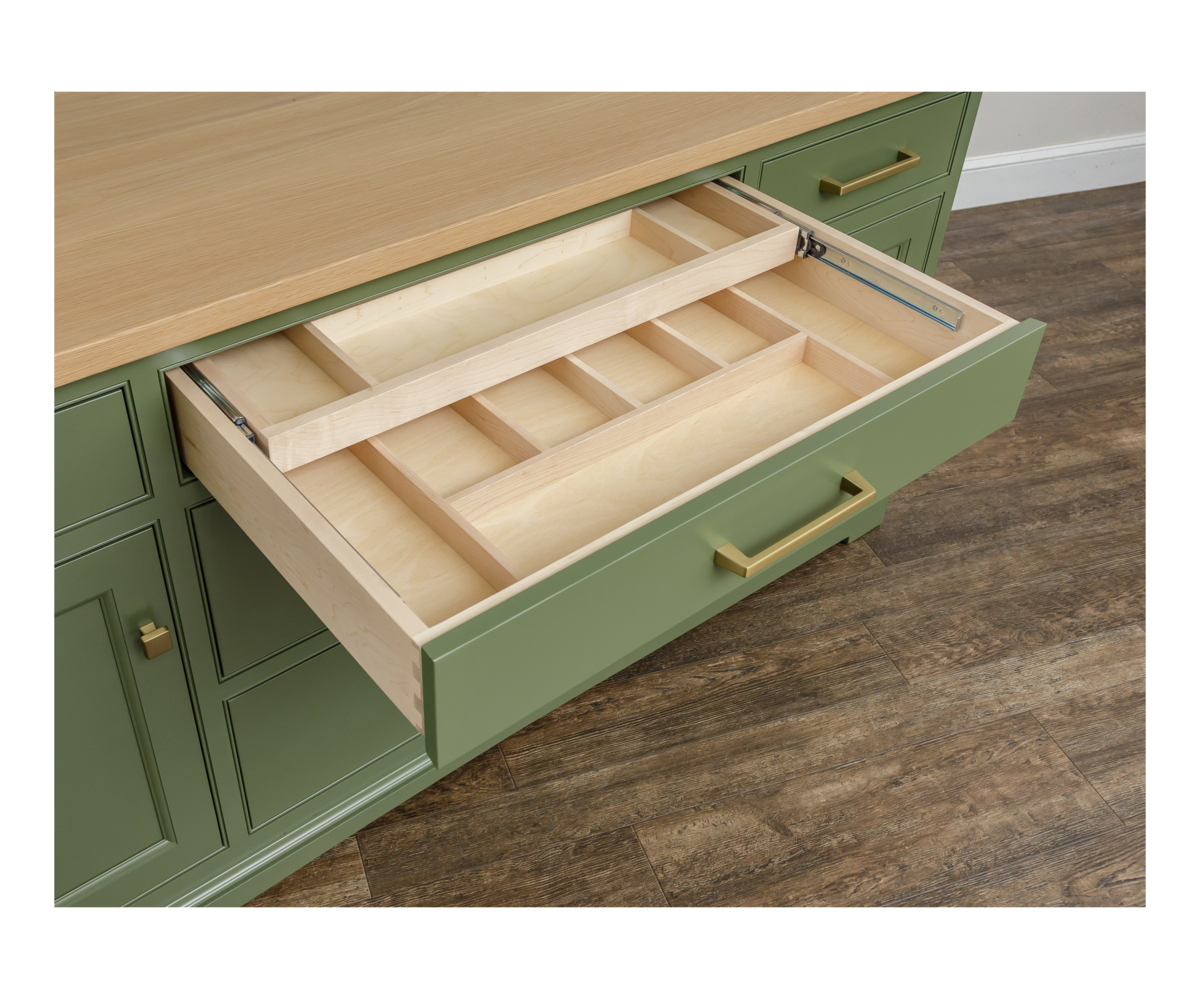 • Two tier silverware in center drawer