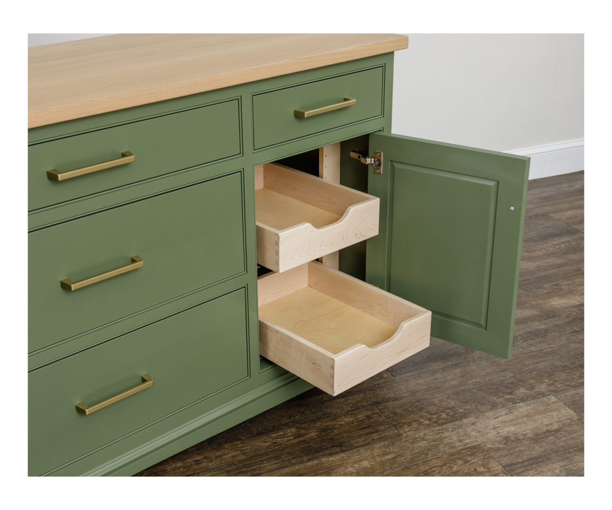 • Full extension soft close drawer slides