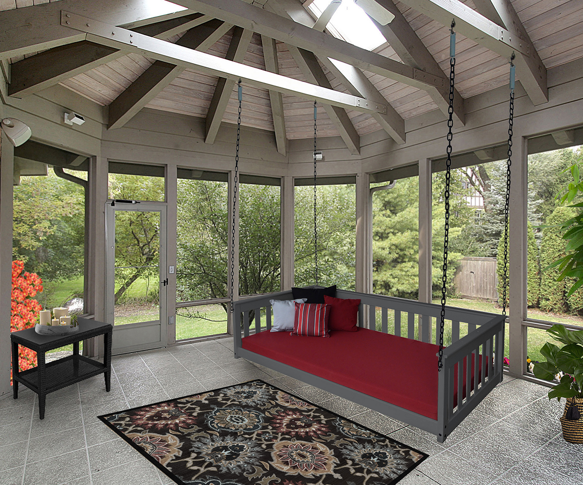 Features: • Needs to be hung inside or under a covered porch • Made of knot-free Southern Yellow Pine wood • Shown with a heavy duty black chain